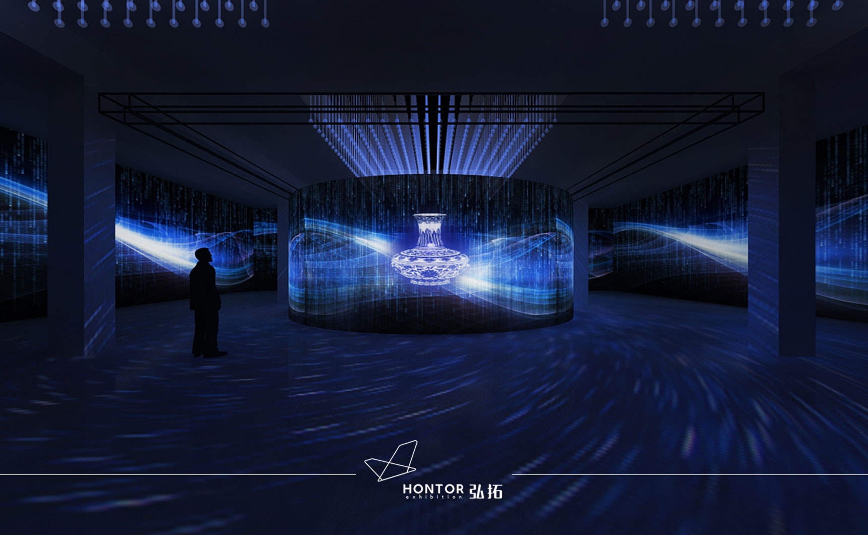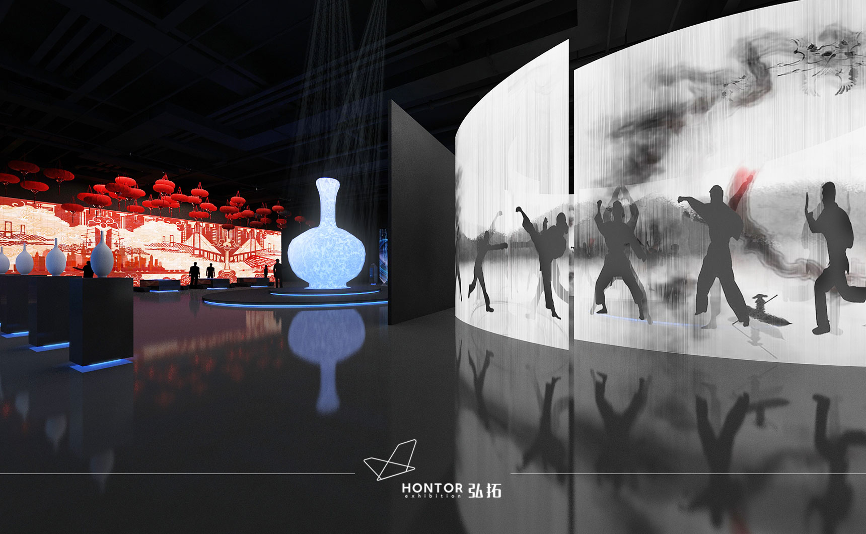 沉浸式投影秀是 2018“遇见中国”特展最主要的项目,利用中国高科技前沿的数字成像、全息影像、视觉类交互等多种数字媒体 手段,围绕“数字沉浸”,“艺术体验”,“文化传承”,“科技创新”等多方位立体展现灿烂的中国悠久的传统文化以及科技新力量。投影秀 所采用的多媒体古灯装置象征着照亮合作之路的文化之火长明。体验者可以通过展示回顾中国五千年的悠久文明,了解中国武术代 表的特有的中国人文精神以及中国“一带一路”国家的合作模式的诚意和决心。